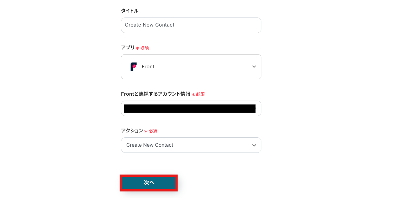 「フォームの回答内容をもとにFrontにContactを作成する」ワークフローは、フォームの回答内容を自動で反映します。