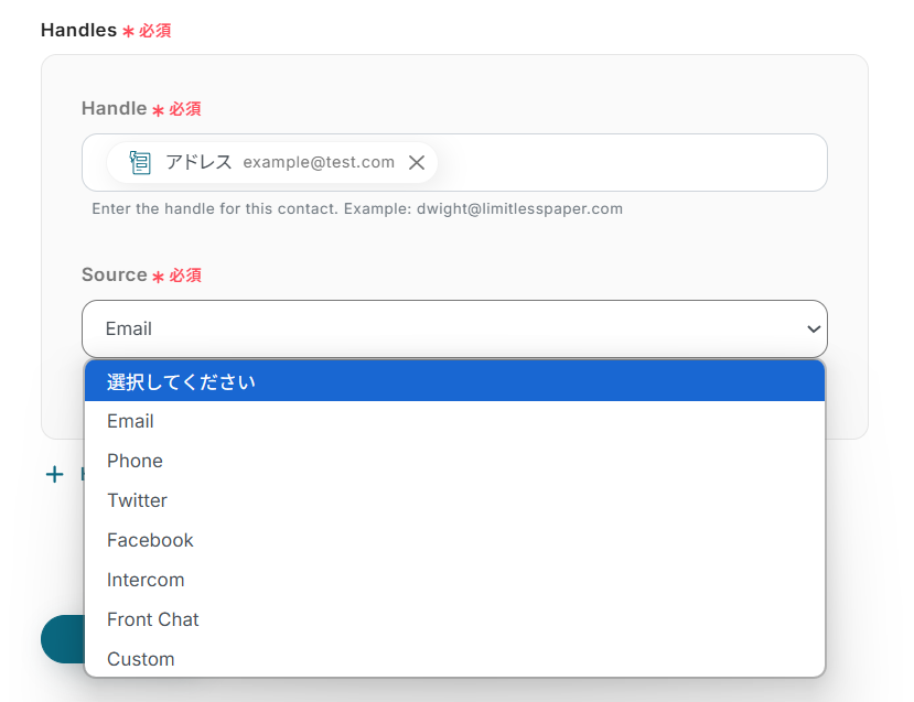 今回はフォームでアドレスを設定しているので、Emailを選択しましょう。