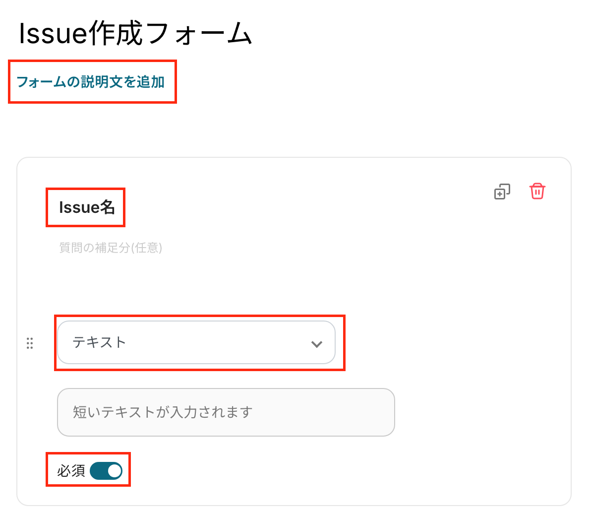 「フォームの説明文を追加」をクリックするとフォームの説明文を設定できます。