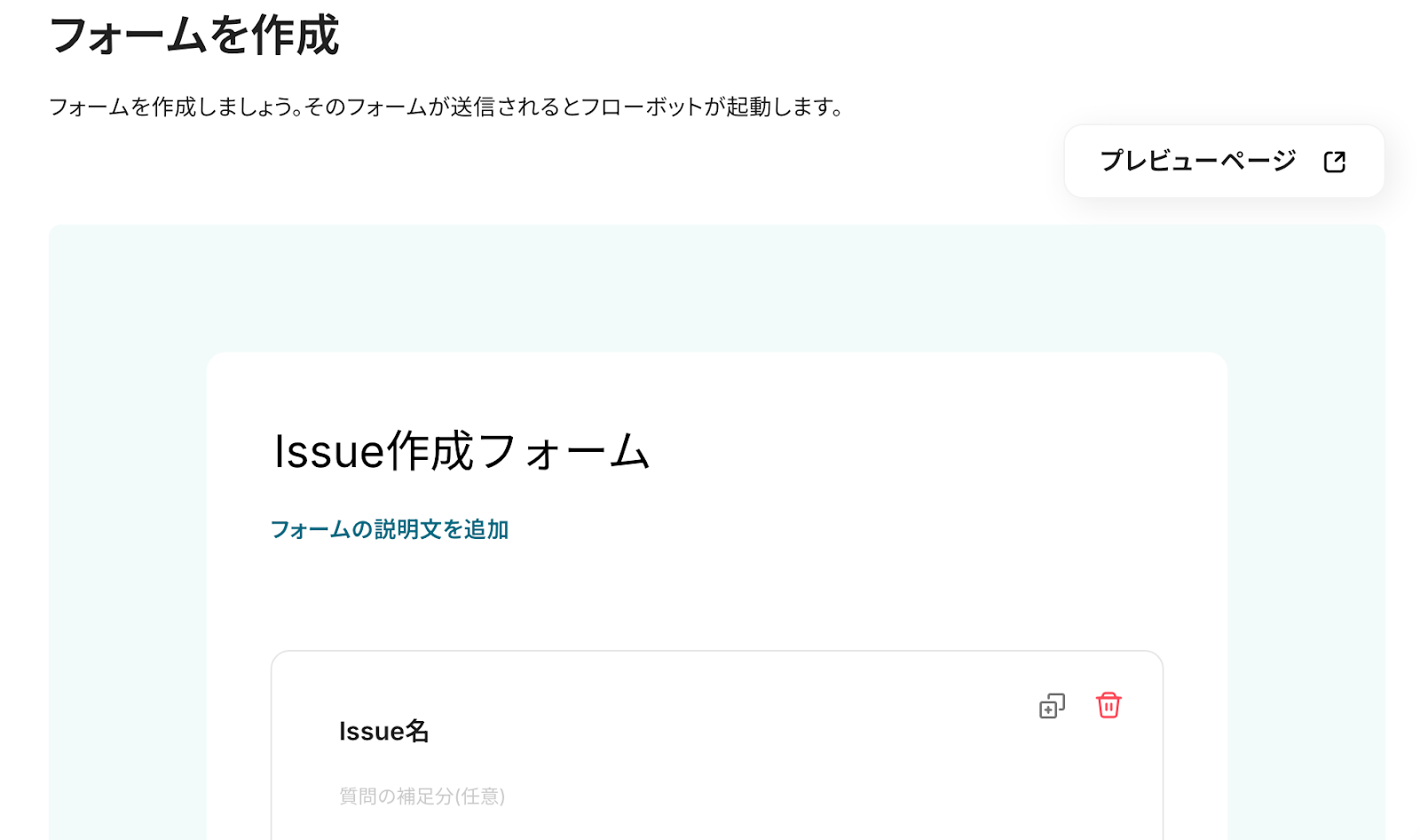 画面一番右上の「プレビューページ」をクリックすると、フォームの完成形を確認できます。