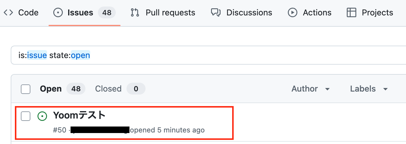 最後に、GitHubの画面に遷移し、Issueが作成されたか確認をしましょう。
