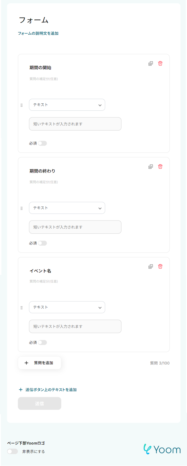 2.フォームを作成 ここでは、トリガーとなるフォームを作成しましょう! 今回は、下記のようなフォームを作成しました。