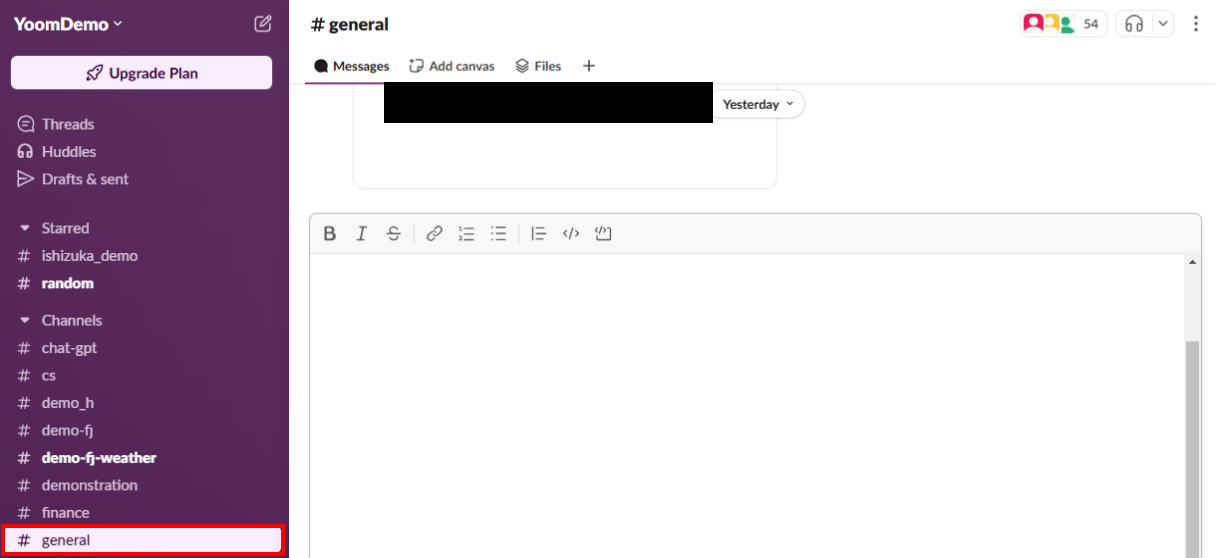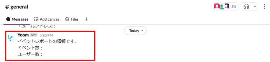 入力が完了したら、「テスト」を実行してみましょう! テストが成功すると、Slackにメッセージが送信されているはずなので確認してみましょう。 下記画像のように、設定したメッセージデータが反映していればOKです。 最後に、Yoom画面に戻り「保存する」を押して次のステップに進みましょう。