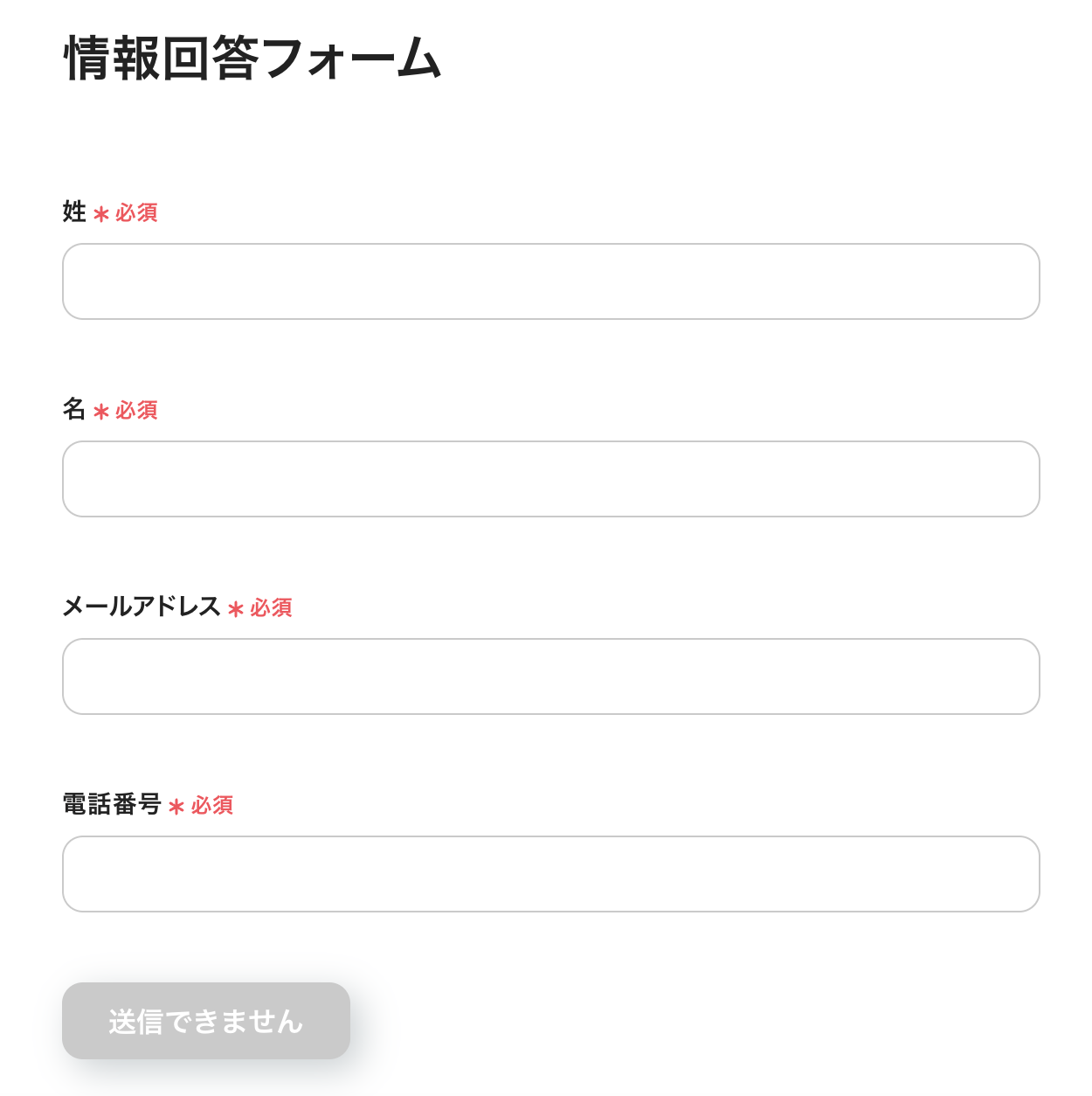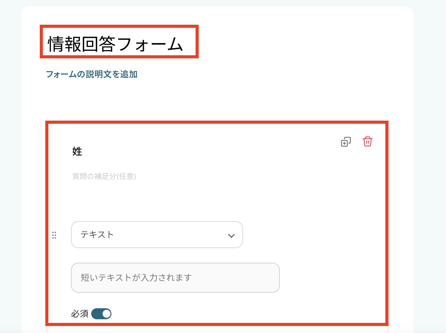 実際に画面上で「フォームのタイトル」や「入力項目」などを入力してフォームを作成していきます。