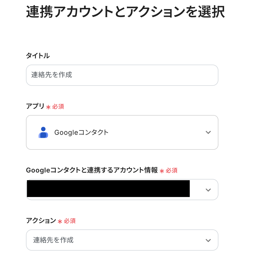 今回はテンプレートの項目で連携手順を解説していきますが、Googleコンタクトの連絡先に登録したい内容に合わせて項目は変更してくださいね!