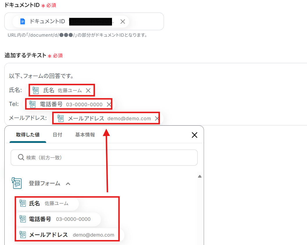 Yoomフォームでの回答内容をGoogleドキュメントに保存する