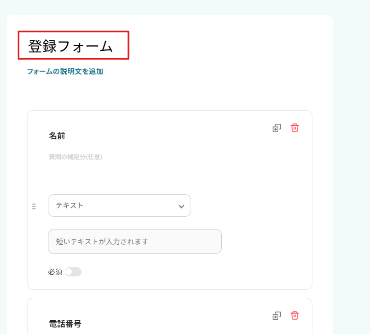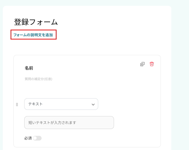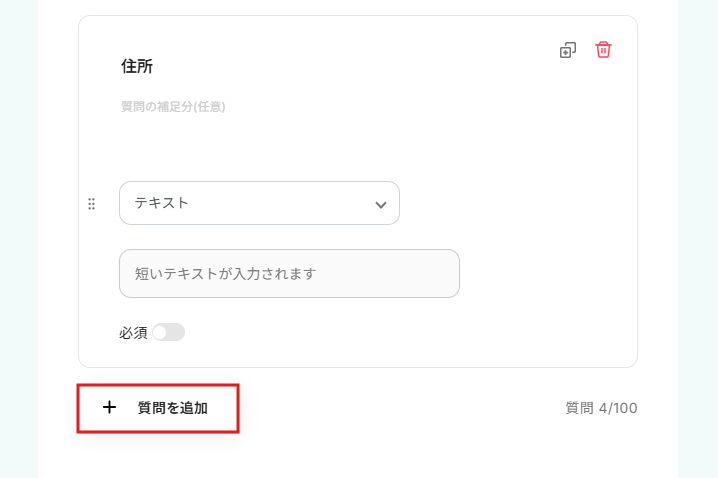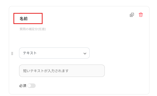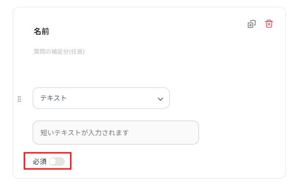 質問を必須に指定したい場合は、必須ボタンをクリックしてください。