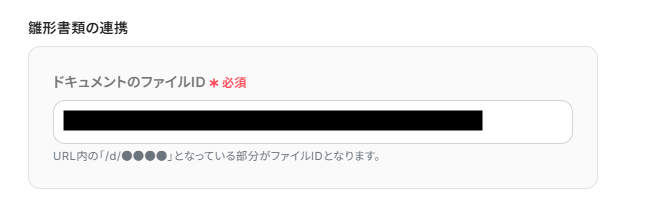 ドキュメントのファイルIDは入力欄下部を確認して、入力してください。