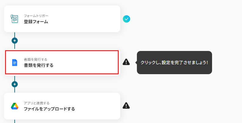 「Googleフォームの回答をもとにGoogleドキュメントで書類を発行し、Google Driveに保存する」ワークフローはデータ収集から書類作成、保管までを一貫して自動化する業務ワークフローです。