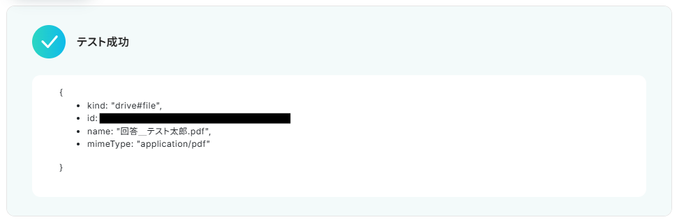 テスト成功画面を確認後、Google Driveにフォルダにアップロードされた書類を確認してみましょう。