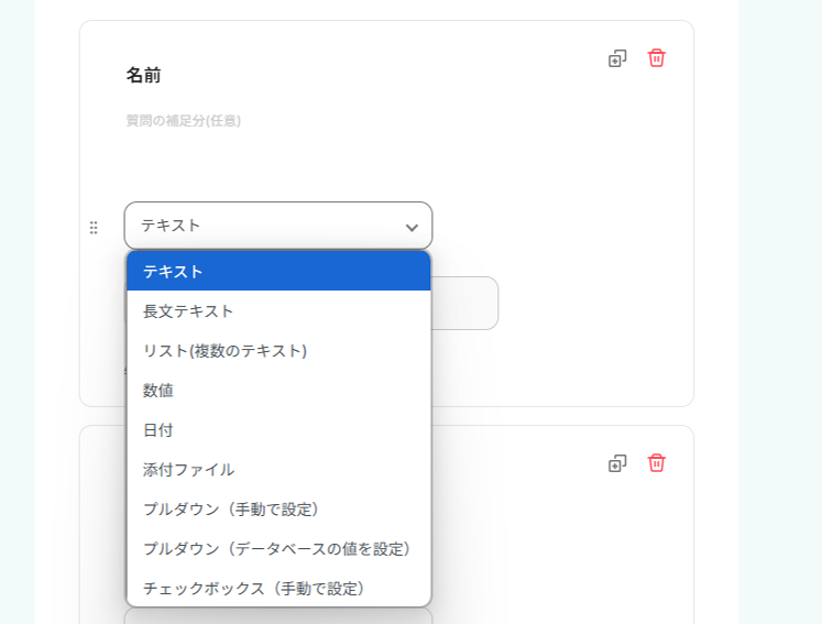 長文ではない回答欄であれば、基本的には「テキスト」を選択するのがおすすめです。