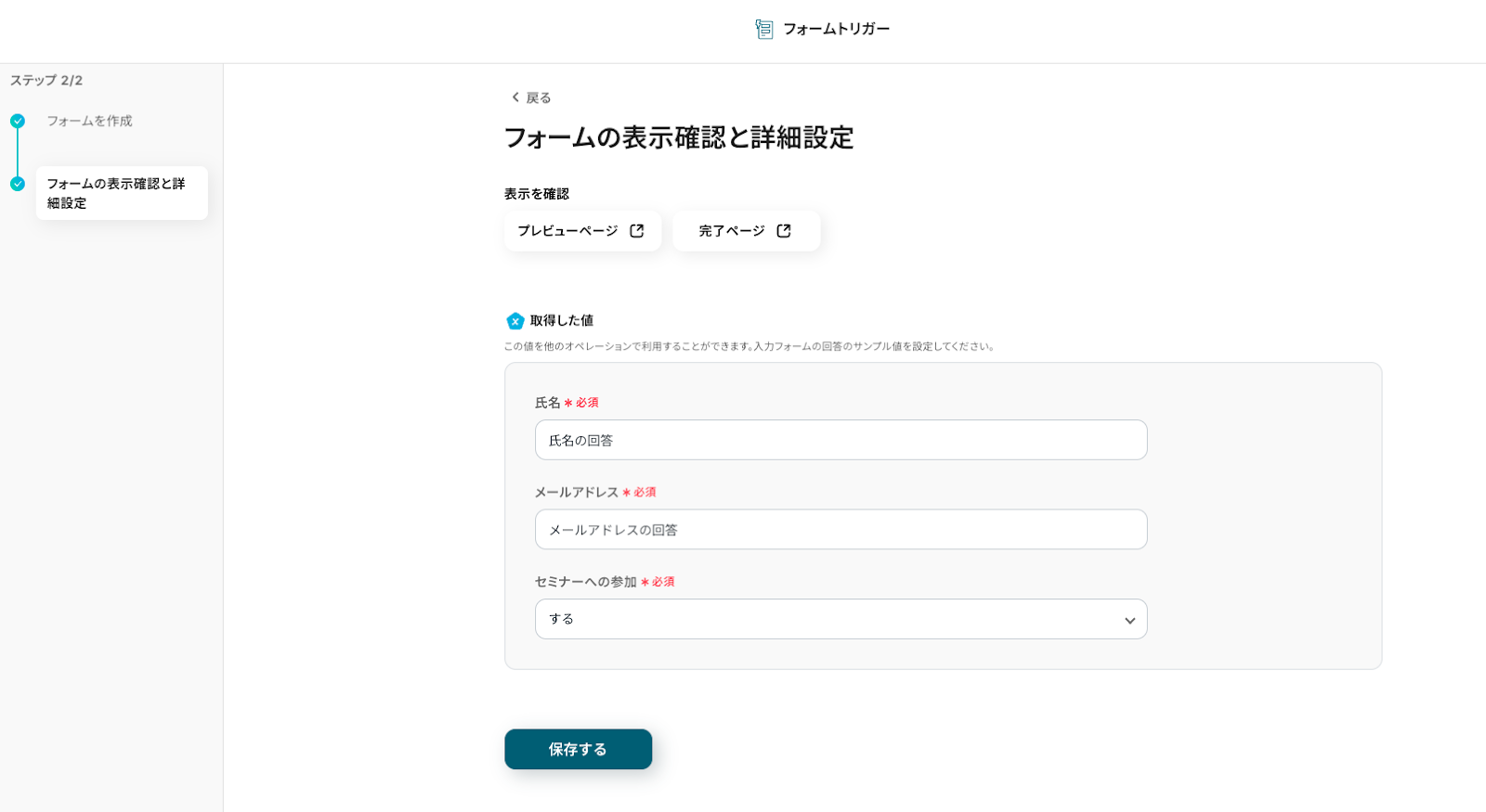 ※ここで入力したテスト値は、フローの実行時に影響しません。