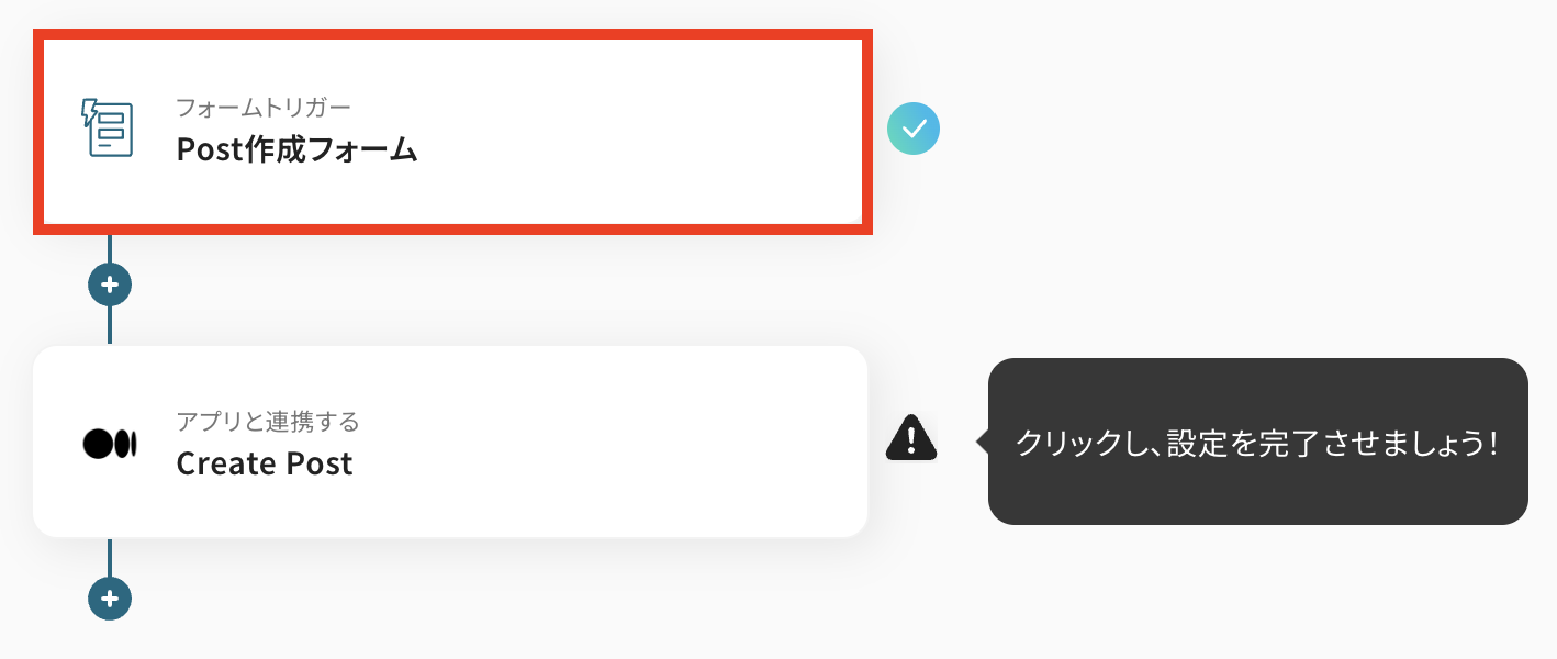 まずはフォームを作成しましょう! 以下の赤枠の「Post作成フォーム」をクリックしてください。 なお、デフォルトで設定済みになっていますが、使い方に応じて内容を編集することができるので、一度確認してみましょう。
