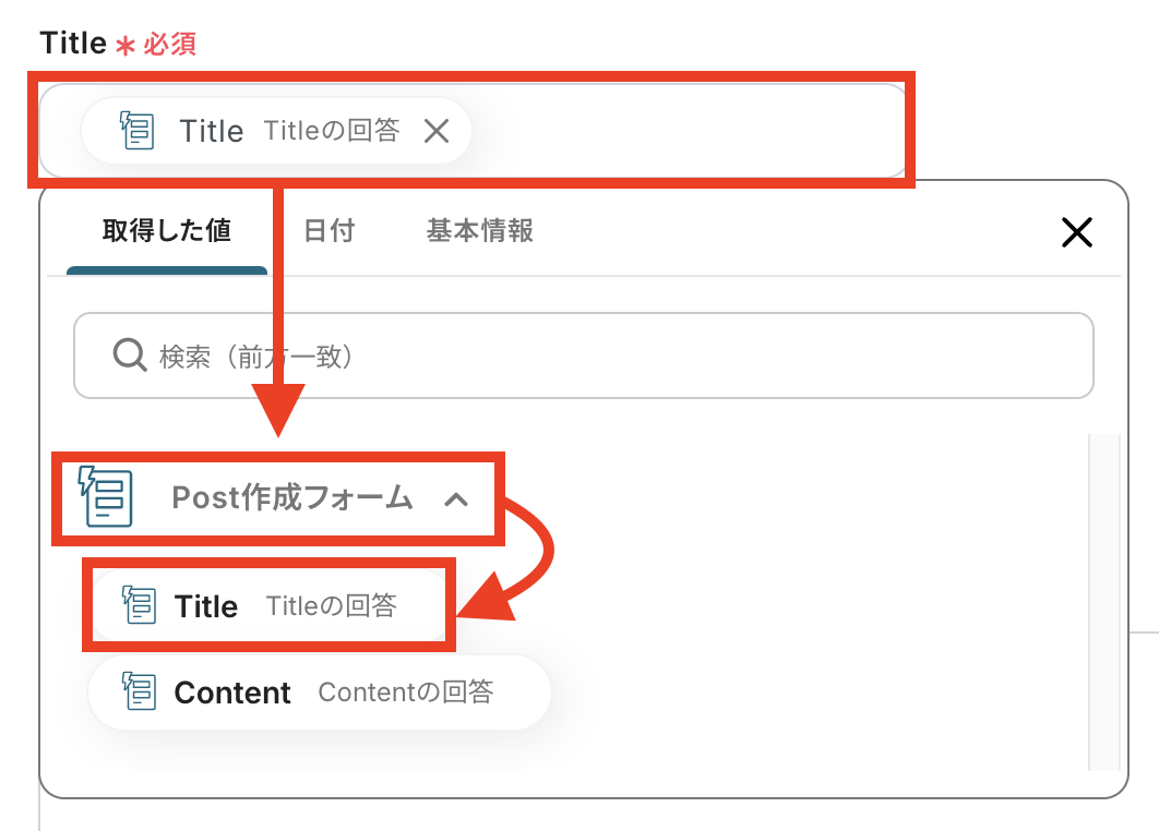以下のように、各入力欄をクリックし、先ほどのステップで設定したフォームの入力項目から適したものを選択して設定しましょう。 User IDも同様に、入力欄をクリックして表示される候補の中から選択できます。