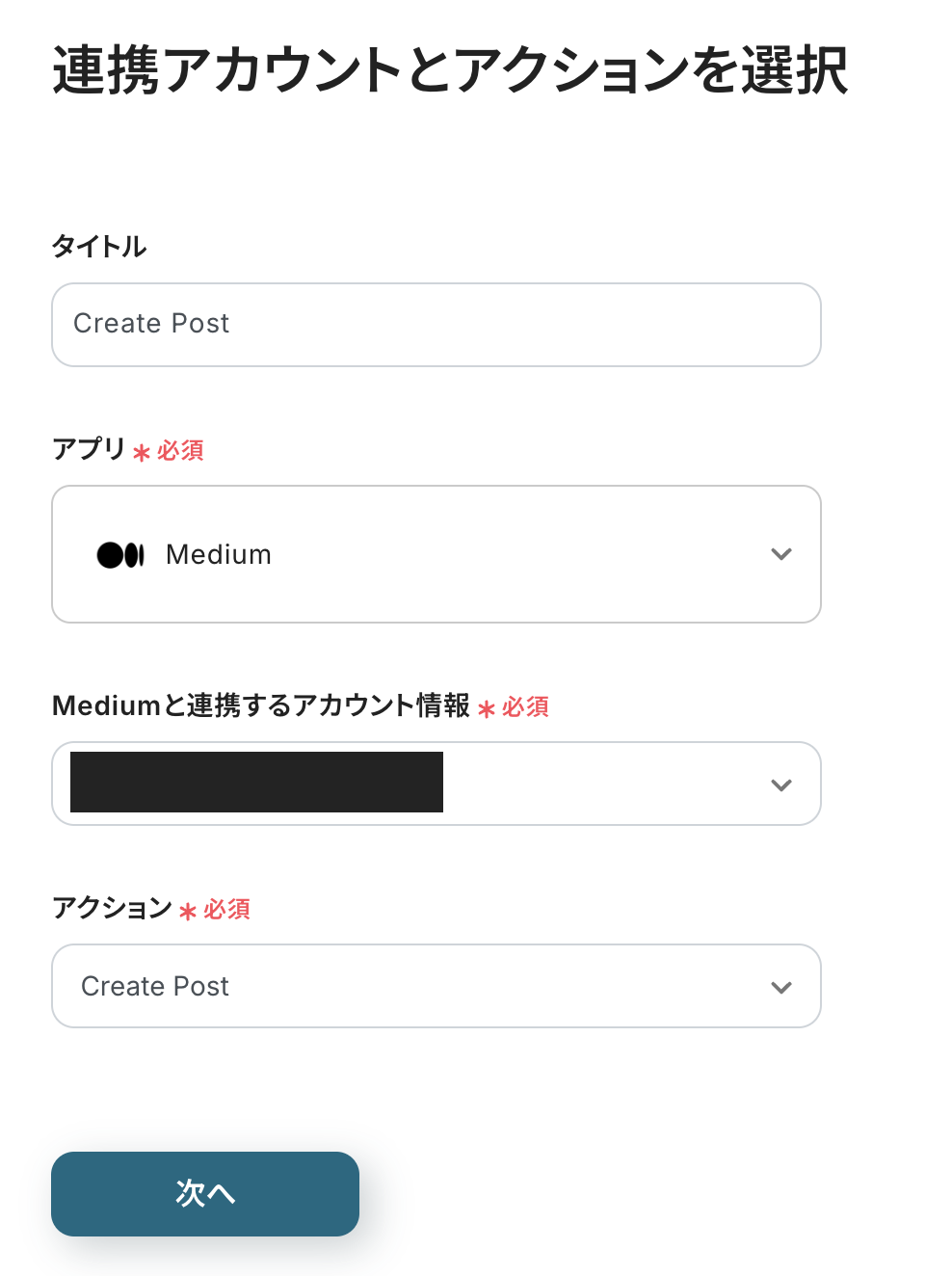 ステップ4:Mediumのアクション設定