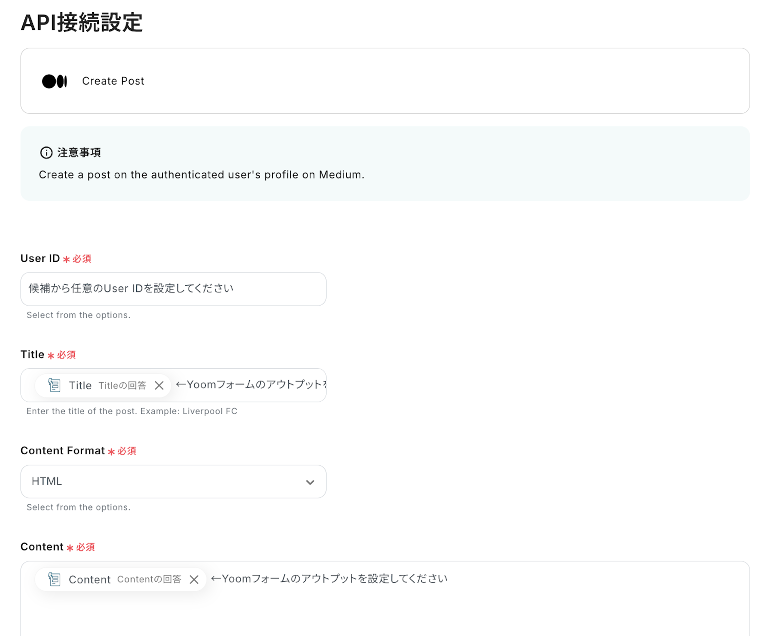 YoomフォームのデータをMediumに連携する