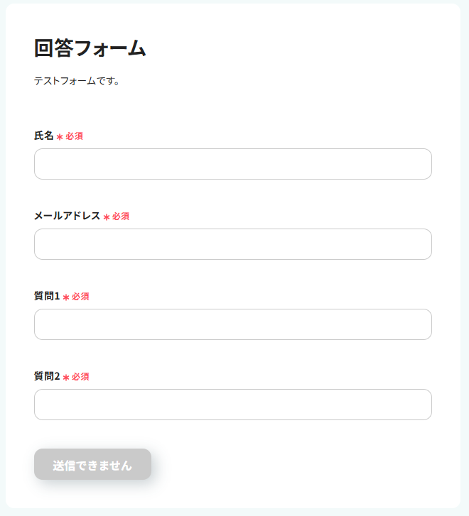 最後に、設定した回答フォームをプレビューページで確認してみましょう!