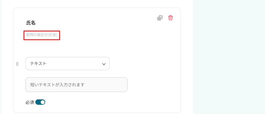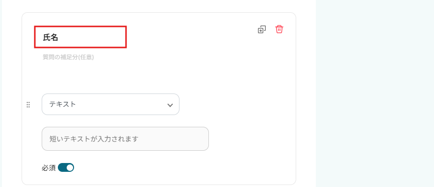 下図赤枠の「氏名」の部分が、質問項目のタイトルになります。