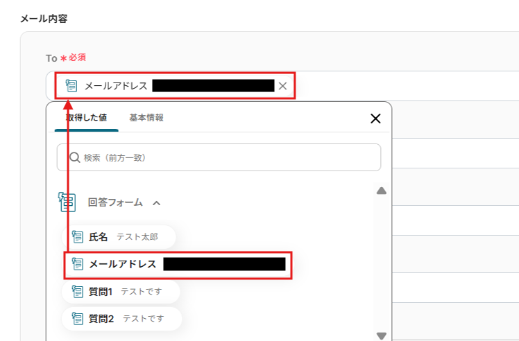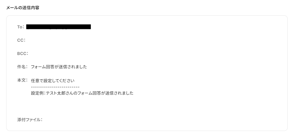 たとえば、フォームの回答データを引用して回答者のメールアドレスをToに設定すれば、サンクスメールの自動送信として活用できます。
