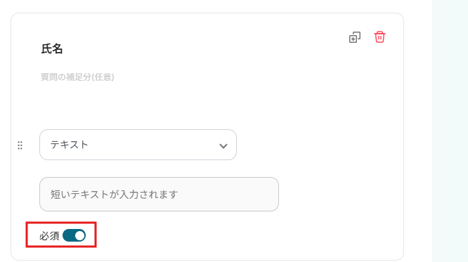 回答を必須にしたい場合は、必須ボタンを「ON」にしてくださいね。