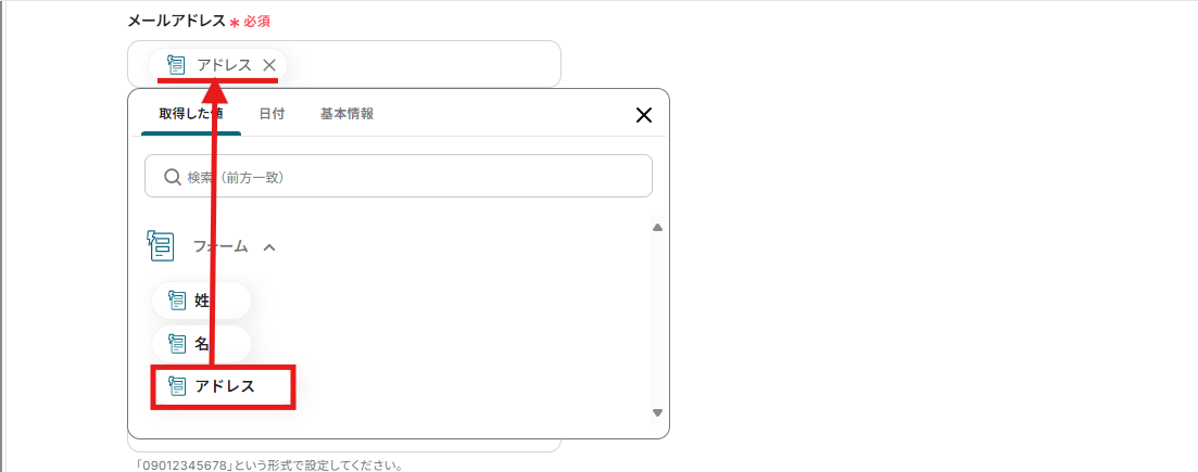 この設定により、フォームの回答があったら「アドレス」を取得し、Shopifyの顧客情報に自動で登録することができます。