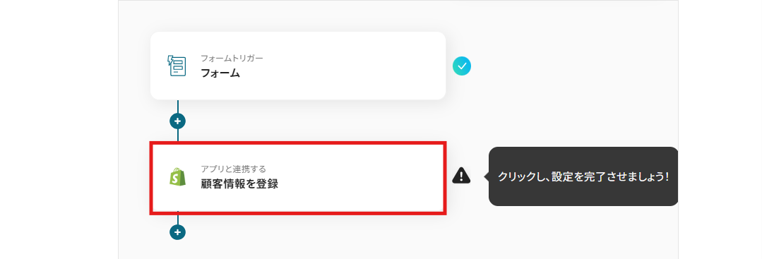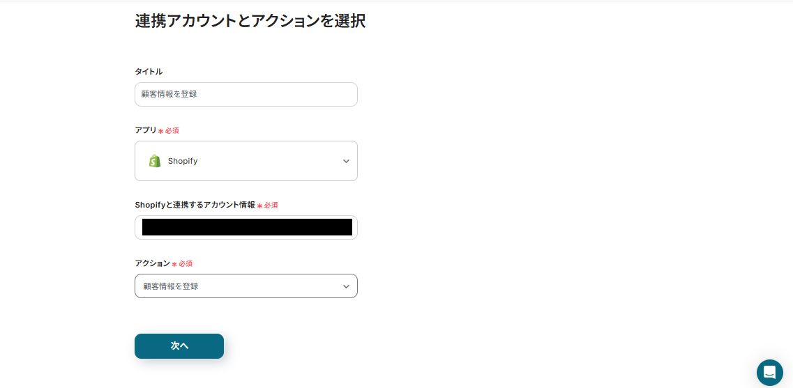 続いて、Shopifyアイコンの「顧客情報を登録」を設定していきましょう。