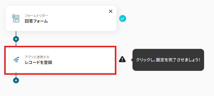 1) フローに戻り、「アプリと連携する レコードを登録」のアイコンをクリックします。