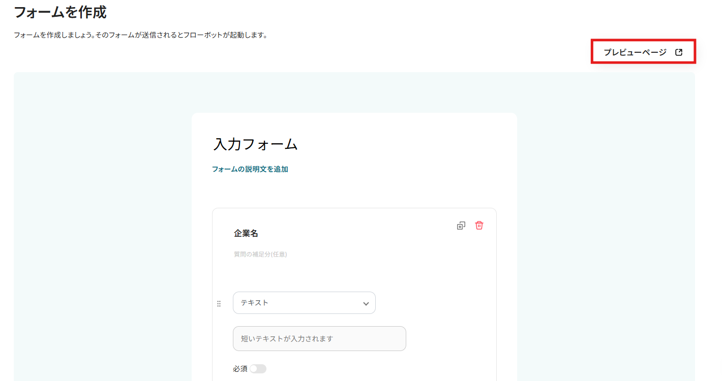 右上の「プレビューページ」をクリックすると実際の表記も確認することができます。