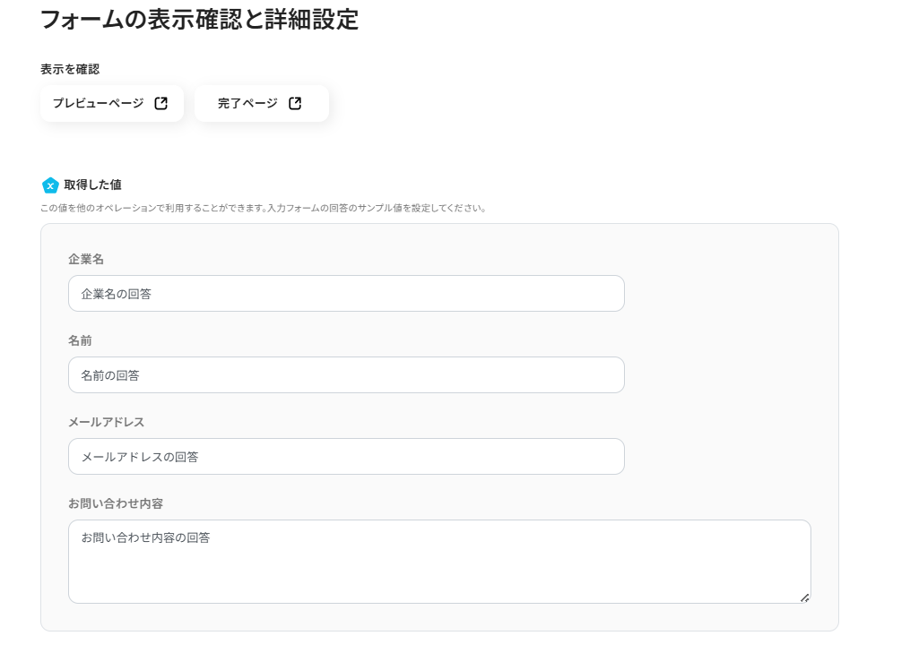 なお、フォームの項目を増やしたり変更した場合は、「○○(項目)の回答」と入力してください。