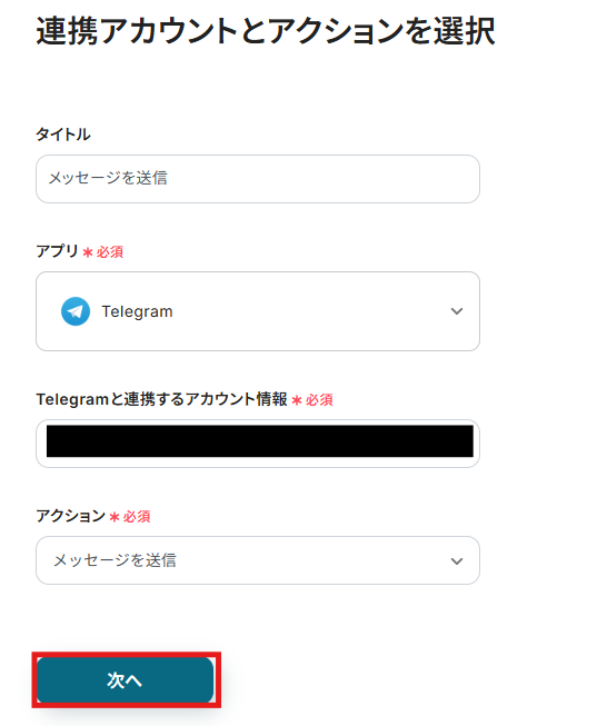 ステップ4:Telegramへメッセージを送信するアクションを設定