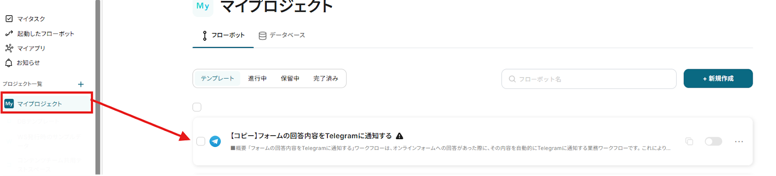 また、コピーしたテンプレートはマイプロジェクトに保存されているので、マイプロジェクトからも開くことができます。