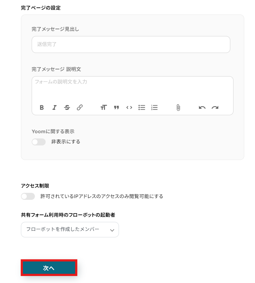 通知の送信先にも関わるので必要なら変更し、問題なければ「次へ」をクリックしましょう!