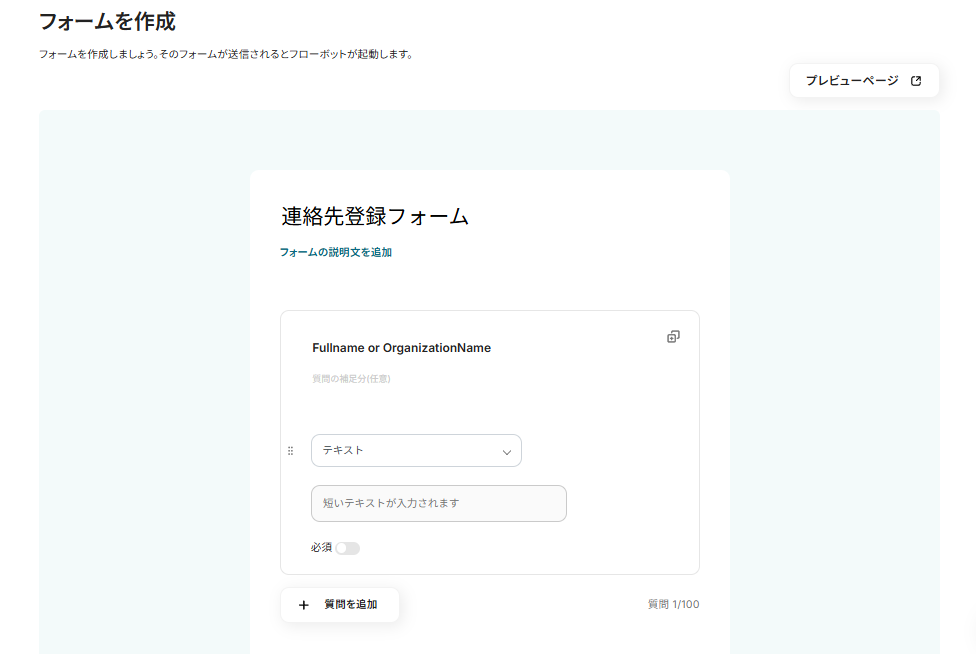 フォーム作成の画面が表示されます。 テンプレートで事前にフルネームを入力させるフォームが作成されています。