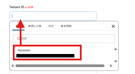 Tenant IDは以下の画面のように表示された候補からクリックしましょう。