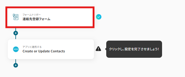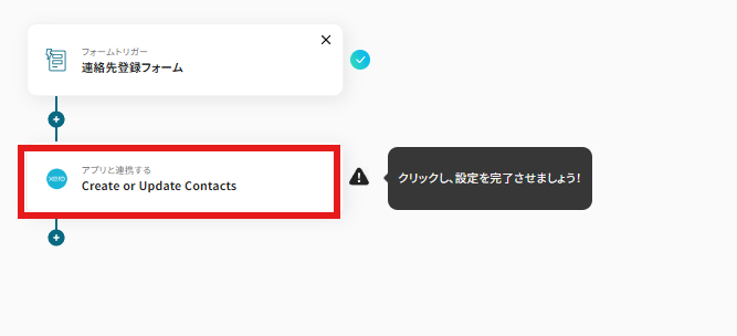 ステップ4:フォームの内容でContactsを作成する フォームの回答内容を元にXeroでContactsを作成するための設定を行います。 以下の赤枠をクリックしましょう。
