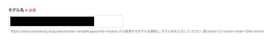 「モデル名」はこちらから使用するモデルを選択し、入力しましょう。