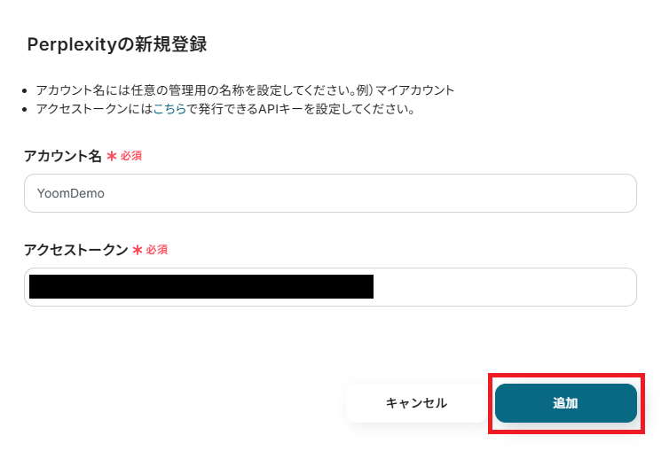 ・Perplexity、SlackのそれぞれとYoomを連携してください。
