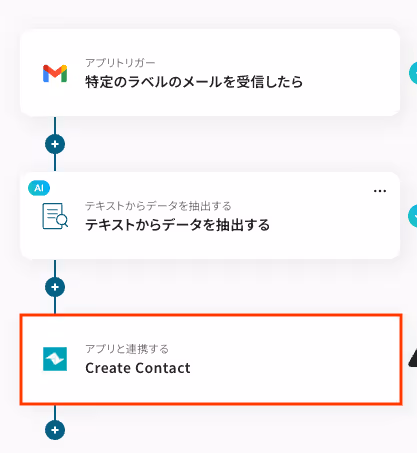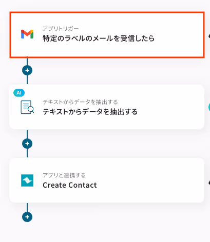 Gmailで特定のラベル(例:新規問合せ)が付与されたメールを受信した際に、メール本文から氏名や連絡先を自動で抽出し、Teamleaderに新しいContact(連絡先)として登録します。
