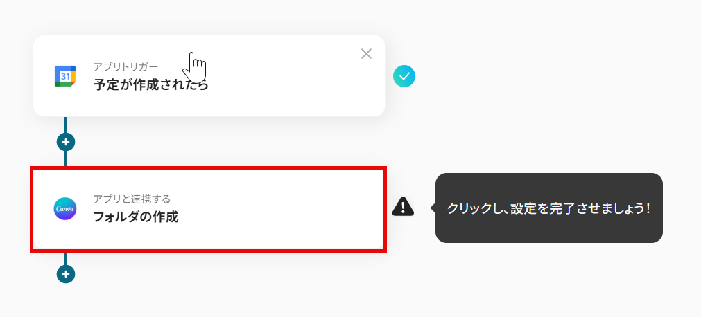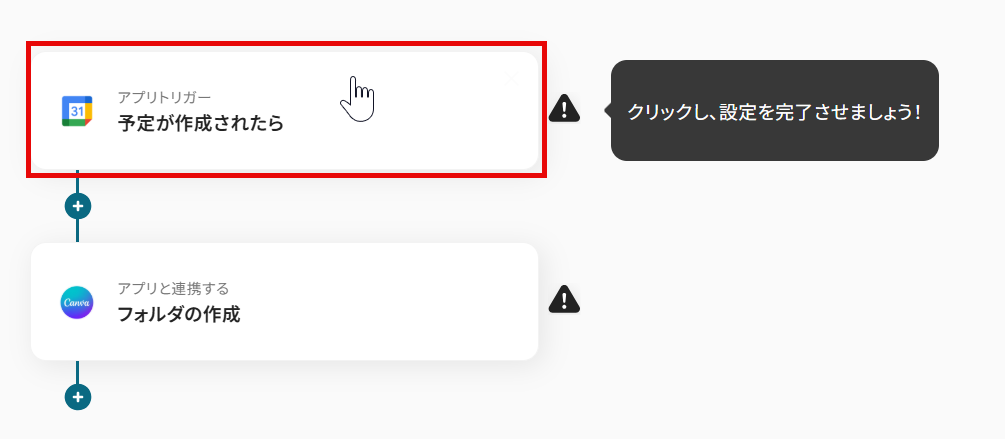 今回は「Googleカレンダーで予定が作成されたら、Canvaにフォルダを作成する」 フローを作成していきます! 作成の流れは大きく分けて以下です。