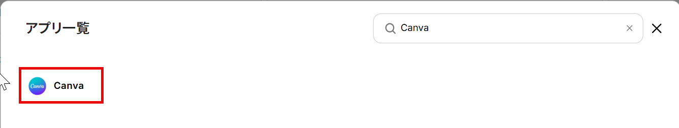 同様にマイアプリから「新規接続」を押した後、Canvaを検索し、クリックしてください。