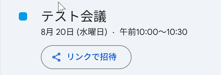 事前準備 テスト用にGoogleカレンダーに予定を追加しておきましょう。テスト用なので、仮の情報で問題ありません!