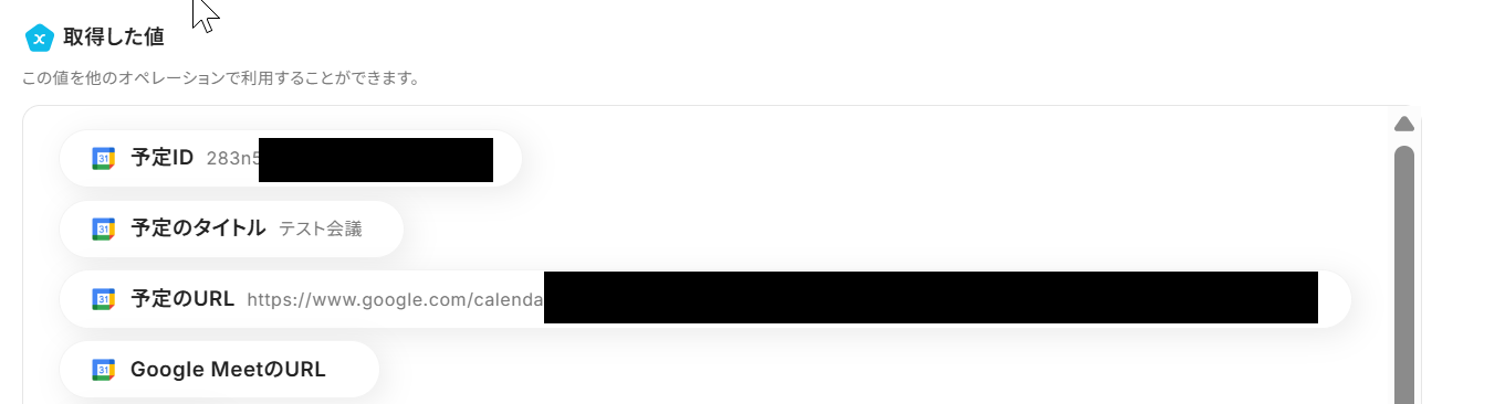 以下のように入力が完了したら「テスト」をクリックします。(予定を作成していない方は、テストの前に準備しておきましょう。)