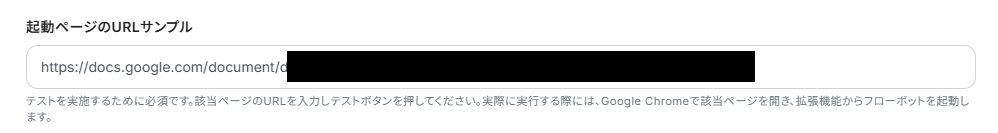 起動ページのサンプルを入力します。テスト実行のためにGoogle ドキュメントのURLを入力してください。