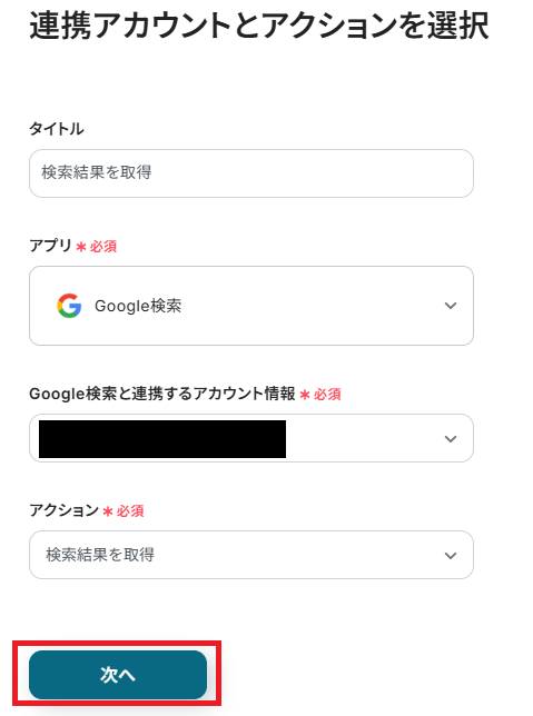 連携アカウントやタイトルに問題がなければ「次へ」をクリックします。タイトルは任意で変更も可能です。