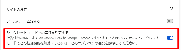 拡張機能の詳細設定から、シークレットモードでの使用を許可することを忘れないようにしてください!