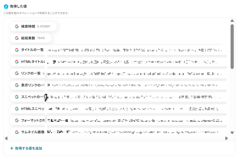 ステップ4:Google検索より検索結果を取得
