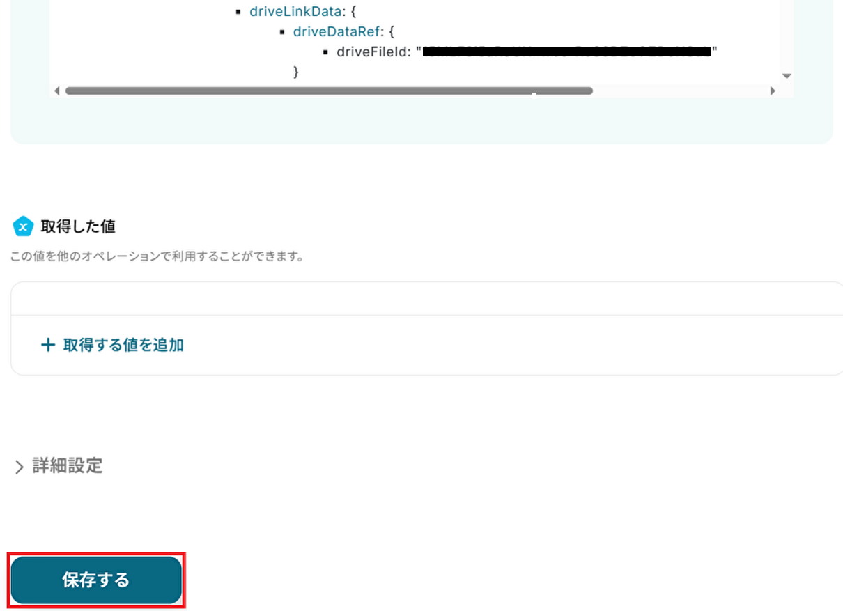 成功したら保存しましょう。 ここで取得した値を次以降のステップで活用します。