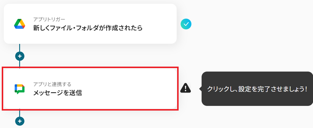 Google Driveのトリガー設定、Google Chatのアクション設定