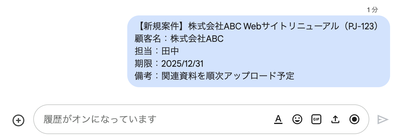 ・Google Chatのチャットやスレッド機能を活用して、リードに関する議論や情報共有をスムーズに行えます。