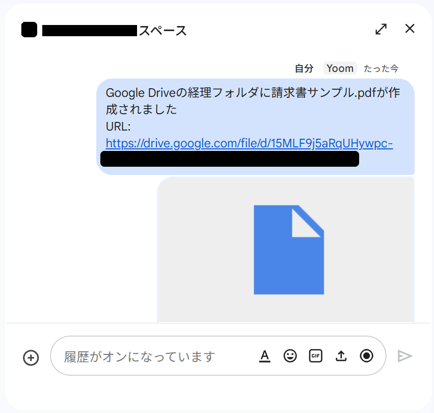 Google Driveのファイル情報が、Google Chatのスペースに届きました!